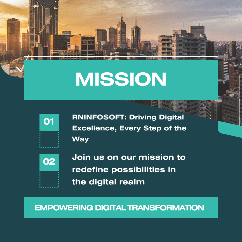 At RNINFOSOFT, our mission is clear: to redefine value by striking the perfect balance between quality and affordability. We are committed to providing top-notch website design and development, mobile application development, SEO, and other digital marketing services that meet the highest standards of excellence, while remaining accessible and affordable to businesses of all sizes.